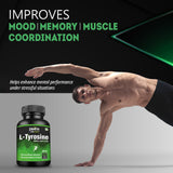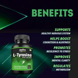 HELPS BOOST COGNITION & ALERTNESS: Tyrosine helps stimulate the nervous system to keep it functioning well. It helps synthesize several brain chemicals and neurotransmitters that regulate appetite, facilitate in stabilizing your body’s reaction to stress factors. It helps regulate mood and stimulate your nervous system to keep it functioning properly.
